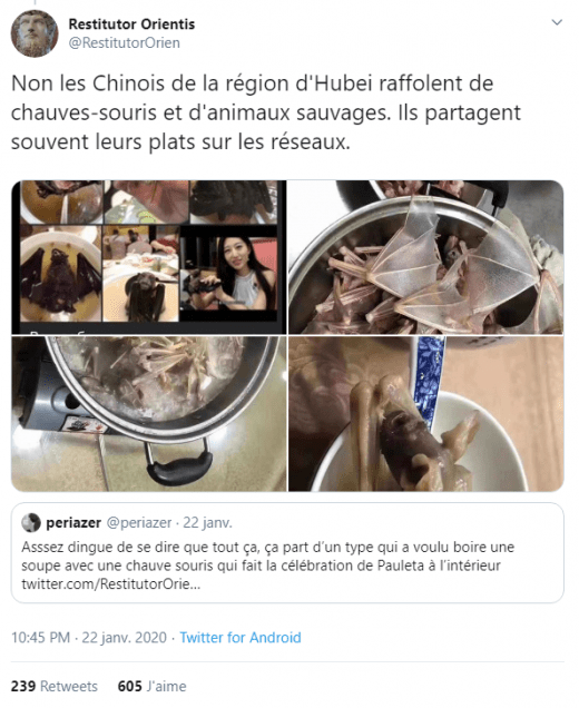 Bat soup is reported to be an unusual but popular dish particularly in Wuhan, where the virus is understood to have originated at an open air fish market.